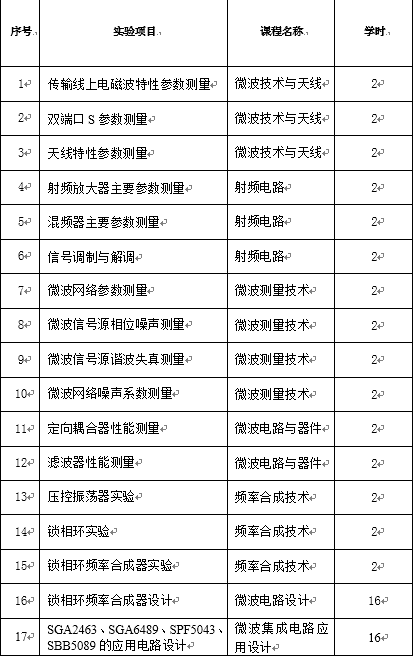 电磁场与电磁波技术实验室主要承担高频、超高频电路与系统的设计、开发、测试和验证,主要实验项目如下: