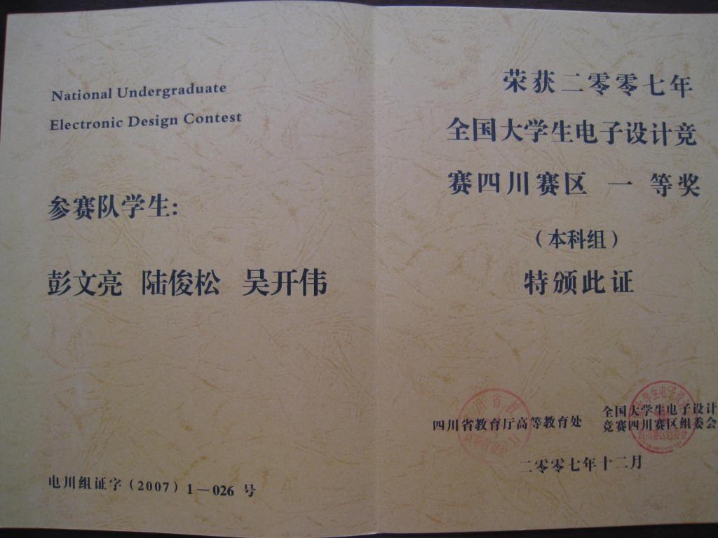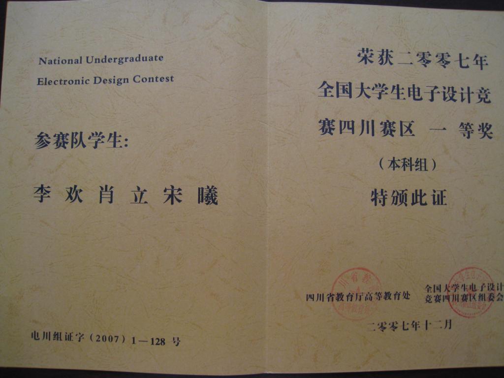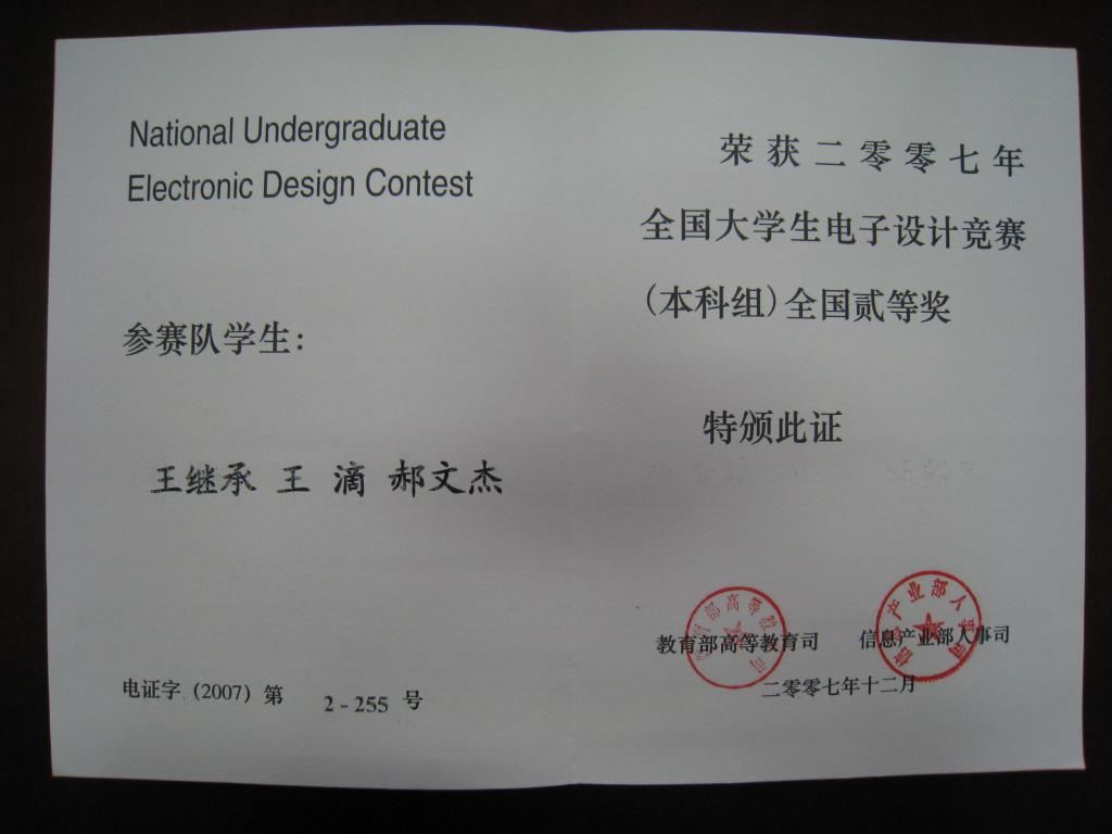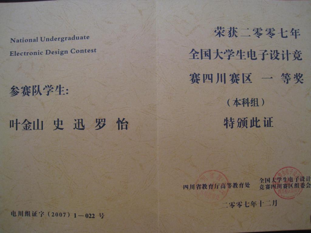 中心往年部分气电结合类学生科技竞赛获奖情况及证书展示
