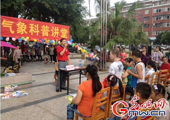 来自成都信息工程学院的老师在活动现场举办气象科普讲座。 殷泓摄