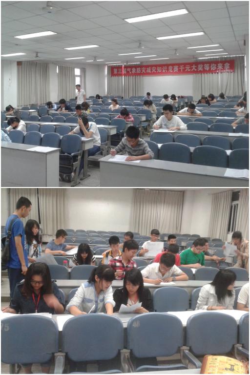 “防灾减灾,从我做起”。 为了让我校学生充分认识气象防灾减灾工作的重要性,增强气象防灾减灾工作的紧迫感和责任感,提高防御气象灾害的能力。电子工程学院气象科普部和组织部共同主办了“第三届气象防灾减灾知识竞赛”。此次初赛是于当天的7:00开始,比赛形式是笔试。7:00考试正式开始并由监考人员分发试卷。整个考试过程中参赛人员遵守考试规则并认真地完成了试题。最后,初赛圆满结束并选出了进入前八名的决赛队伍。