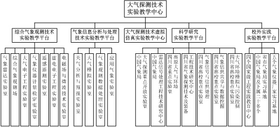 中心拥有综合气象观测技术、气象信息分析与处理技术、大气探测技术虚拟仿真实验教学中心、科学研究实验教学平台、校外实践教学平台等5个高水平实验教学平台。 中心的实验平台、师资力量和实验内容都覆盖了综合气象观测的全部领域,能很好地满足我国气象业务系统对综合气象观测各方面人才的培养需求。具体包括:地面气象观测、高空气象观测、雷达气象观测、卫星气象观测、农业气象观测、交通气象观测、环境气象观测、雷电监测与预警、气象仪器计量检定、气象仪器保障、气象预报与服务等。 (1)实验教学指导委员会由中心正副主任、各实验室主任、行业专家和企业专家组成。委员会全面负责中心发展规划和建设方案的制定,宏观指导建设和运行,参与中心重大事项的讨论和决策,提供学术和技术指导,并对相关管理和教学过程实施监督和评测。 (2)中心实行主任负责制,中心主任具备正高级职称,由学校聘任,全面负责实验中心的建设、教学、研究和管理等工作。同时设副主任一名,负责实验中心的日常教学安排及管理工作,设专职秘书一名,协助实验室的日常管理工作。 (3)实验教学队伍专兼职结合,除了专职实验教师外,部分理论课程授课教师参与指导相关课程的学生实验。 (4)中心建设采取项目制,项目负责人负责实施和管理,实验教学负责人负责把关。 (5)中心实施开放式管理模式。对全校学生开放,向对兄弟院校和社会提供学术支持。 (6)实验室设备购置由中心提出申请,经学院审核报学校教务处批准,由资产处招标统一购买。 (7)中心还设立相关基金,设置专职管理人员,负责大型仪器设备的维护。学校财务处、设备处和审计处负责监督管理中心的经费和设备运行情况。 (8)中心统一安排实验室开放时间并对外公布,同时,不定期举办讲座,介绍各实验室的仪器设备,并经常组织仪器设备操作使用方面的培训。 (9)中心组织多种形式的国内外学术交流和合作研究,邀请国内外专家来中心进行学术报告,和国内外设备生产商建立校企合作实验室,探索卓越工程师培养模式,并派出中心人员到国家气象局和气象设备企业进行访问研究。 (10)中心致力于国家气象行业的发展,设置了开放基金和开放课题,吸引国内外优秀的气象人才开展研究。 | |